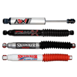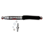 Skyjacker® steering stabilizers are dampening shocks for your steering system. They dampen out the harshness of the highway, the ‘shimmy’ from running the additional weight of larger tires & wheels and place control back into the driver’s hands. Stabilizers also reduce the fatigue of the driver on a personal level by reducing the amount of physical strength it takes to guide those larger tires on and off the road. Changing out the weaker stock unit for a better performing replacement or adding dual steering stabilizers is an inexpensive but worthy investment.